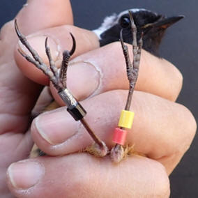 米山富和・西 教生(2024)ジョウビタキ国内繁殖個体へのカラーリング装着による追跡調査の試み.日本鳥類標識協会2004年度大会一般講演要旨集p16.